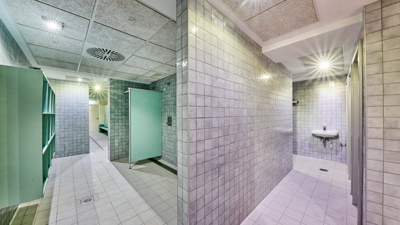 - Es gibt jeweils eine barrierefreie Dusche, Toilette und Umkleide sowie einen Behindertenparkplatz.