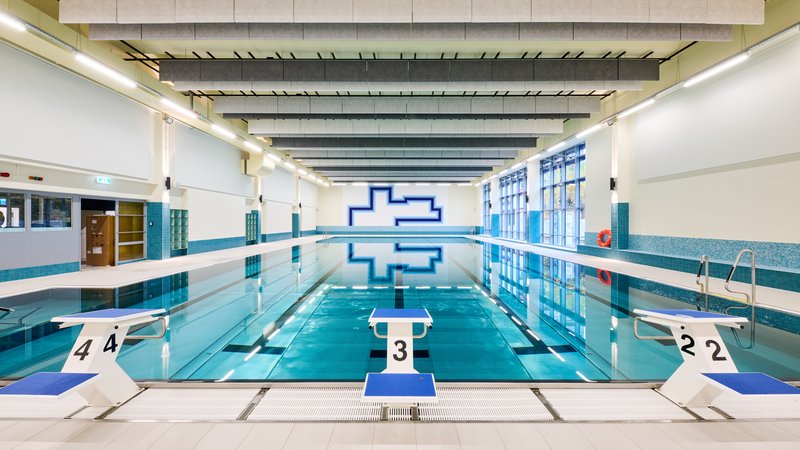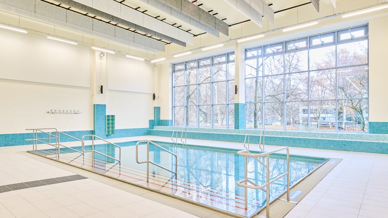 Bei der letzten Teilsanierung zwischen September 2023 und Dezember 2025 wurde das 25-Meter-Schwimmerbecken mit Edelstahl ausgekleidet, die sanitären Anlagen erneuert, das Foyer neu gestaltet, große Teile der Badewasseraufbereitung saniert, das Dach gedämmt und mit einer Photovoltaikanlage ausgestattet. Die Halle verfügt neben dem Schwimmerbecken auch über ein Lehrschwimmbecken aus Edelstahl.