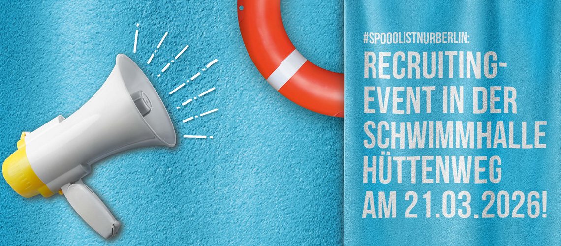 Komm am 21. März 2026 in der Zeit von 10:00 bis 15:00 Uhr in die Schwimmhalle Hüttenweg (Hüttenweg 41, 14195 Berlin Steglitz-Zehlendorf) und nimm an unserem Walk-In-Bewerbungstag teil.