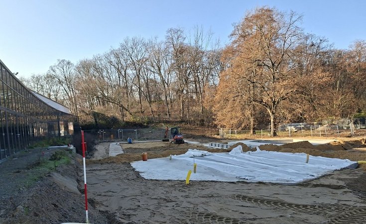 Die vorbereitenden Arbeiten für die Außenbecken sind abgeschlossen. Derzeit finden noch Erdaushubarbeiten für den Sanitärtrakt statt. Die Edelstahlbecken können erst bei wärmeren Außentemperaturen montiert werden.